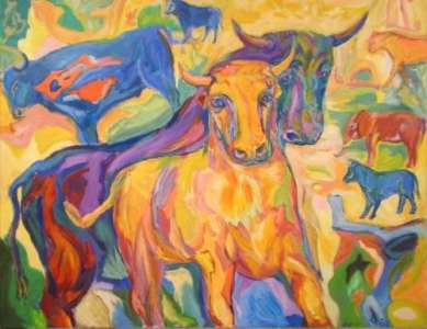 Exposition Hervé Le Bis peinture Les taureaux libres