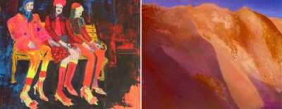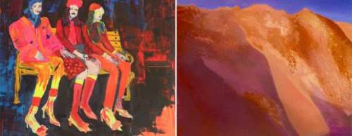 Pour cette exposition, Hildegard Wagner-Harms a souhaité convier sa filleule, Kathrin vom Bruck, venue pour l’occasion de Hambourg. Difficile d’imaginer contraste plus saisissant que celui distinguant ces deux générations d’artistes : vigueur de l’élan expressionniste, spontanément jaillissant pour Kathrin vom Bruck, alchimie calibrée des couleurs, formes et matières pour sa marraine.