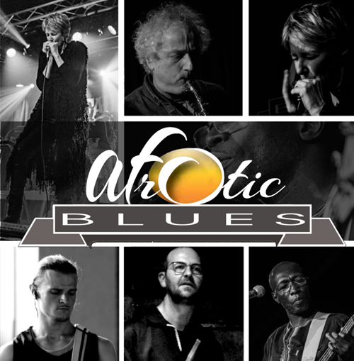 AfrOtic BLUES est un quintet : harmonica-accordéon, basse, guitare, batterie, sax-clarinette-flûte et chant).