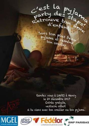 Venez vous amusez avec vos ami(e)s, collègues et autres à la dernière soirée Staps de l’année 2017 qui a pour thème soirée pyjama!