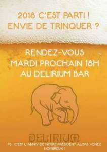 Quoi de mieux qu’une bière au Délirium pour bien commencer l’année 2018 ?! On vous attend nombreux mardi prochain pour trinquer au Délirium à partir de 18h :D