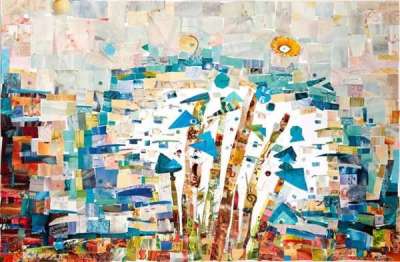 AKO GORAN (Irakien de Sulaimaniyya, vivant à Nuremberg en Allemagne) crée des vues de villes par collage en papier. Pour lui les villes sont des lieux idéalisés de rencontre et de convivialité, dans notre culture comme dans la sienne. Ses oeuvres sont d’une gaieté coloriée et d’une grande simplicité dans la création, mais elles sont en énorme contraste par rapport à la réalité de la vie réelle dans son pays d’origine : le Kurdistan du Sud (Irak). Cet artiste met son art en position contre la guerre et puise son énergie de la vie. Il dit : ’Je TRANSFORME la douleur, que je ressens et que j’ai vécu, en couleurs’. Sa vision sur la vie est exemplaire. Il ne veut rien savoir de noirceur, de souffrance.