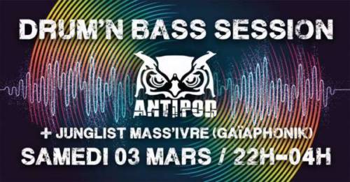 Antipod revient au Diam’s avec une soirée à dominante Drum’n Bass...Guest : Junglist Mass’ivre (Gaiaphonik)...