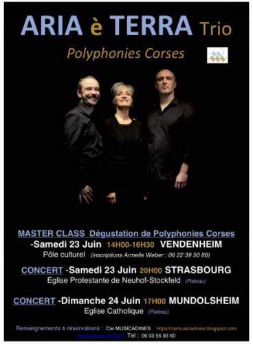 Laurent, Frédéric OTTAVIANI s’associent à la chanteuse Nadine ROSSELLO (Madamicella & Rifà i passi) pour former le Trio de Polyphonies Corses ARIA è TERRA.