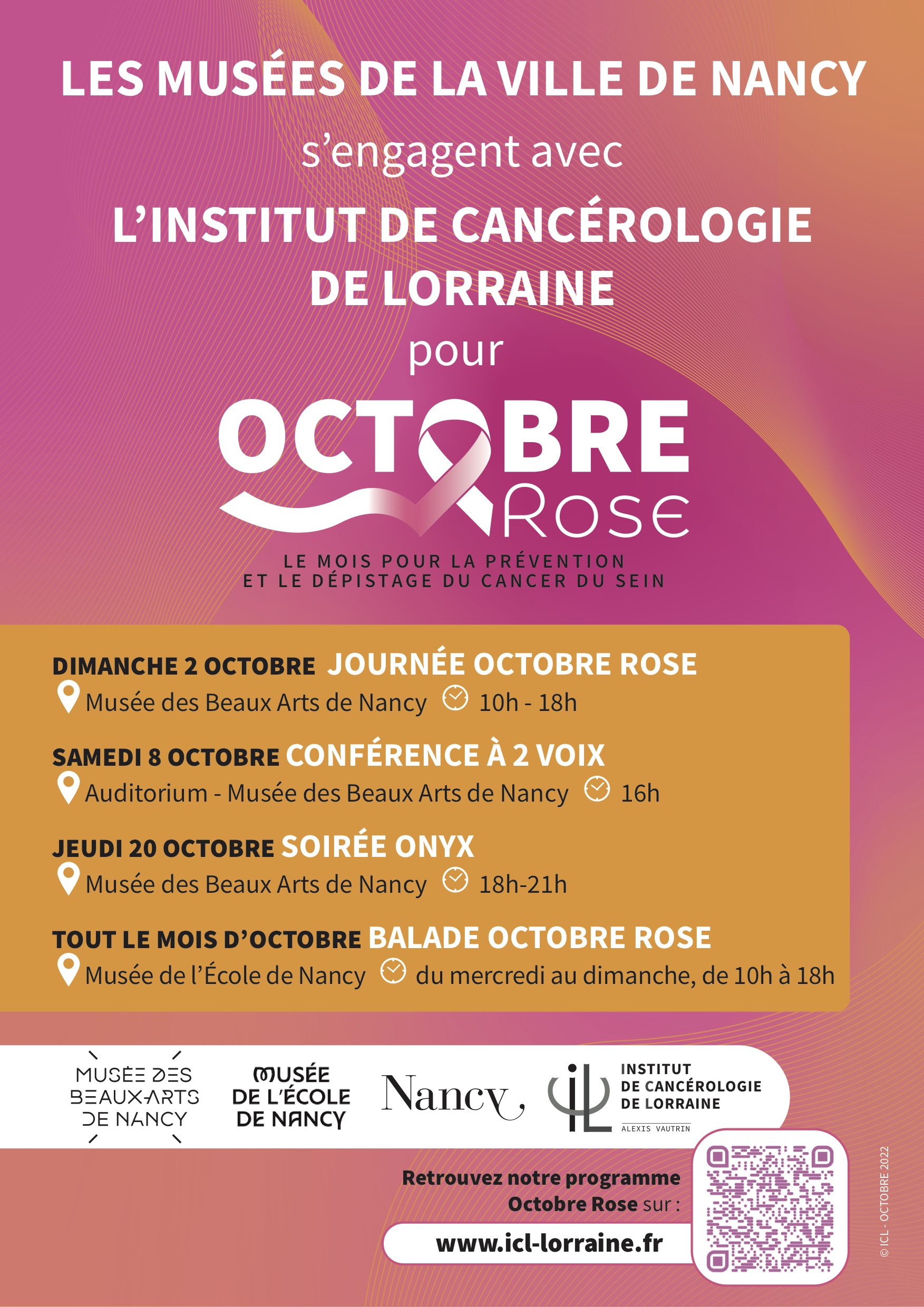 Conférence gratuite à deux voix proposée dans le cadre du partenariat entre l’Institut de Cancérologie de Lorraine et les musées de la Ville de Nancy à l'occasion d'Octobre rose, campagne de sensibilisation au dépistage du cancer du sein.