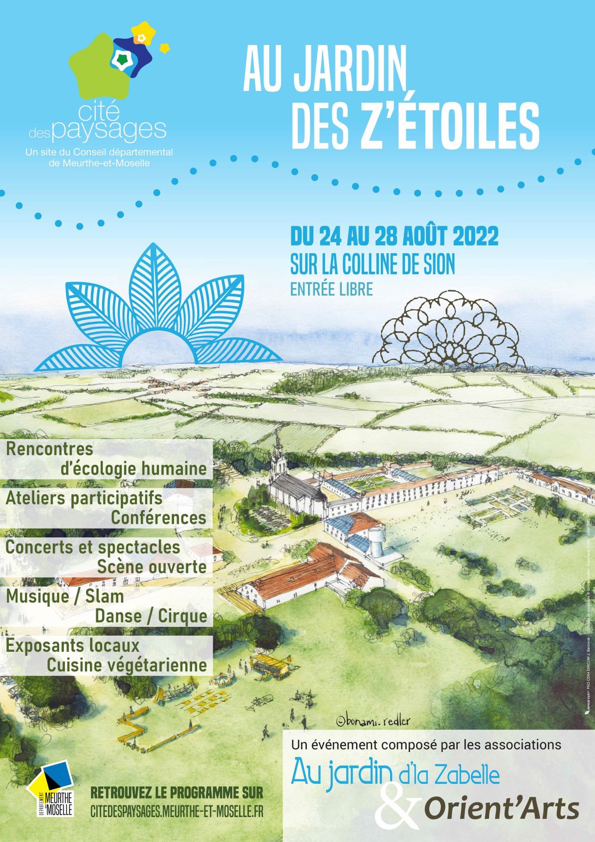 Retrouvez le festival Au Jardin des Z'étoiles du 24 au 28 août 2022, à la colline de Sion, ouvert gratuitement à tous les publics !