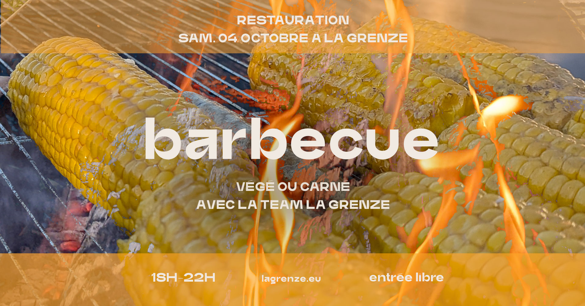 A l'occasion de la fête à la sauccise de La Grenze, c’est reparti pour la saucisse d'automne à La Grenze ! On enchaine sur une nouveau barbeuc en terrasse pour réjouir votre palet avec merguez, saucisses banches, chipolata, bratwurst végé et maïs grillé vegan !