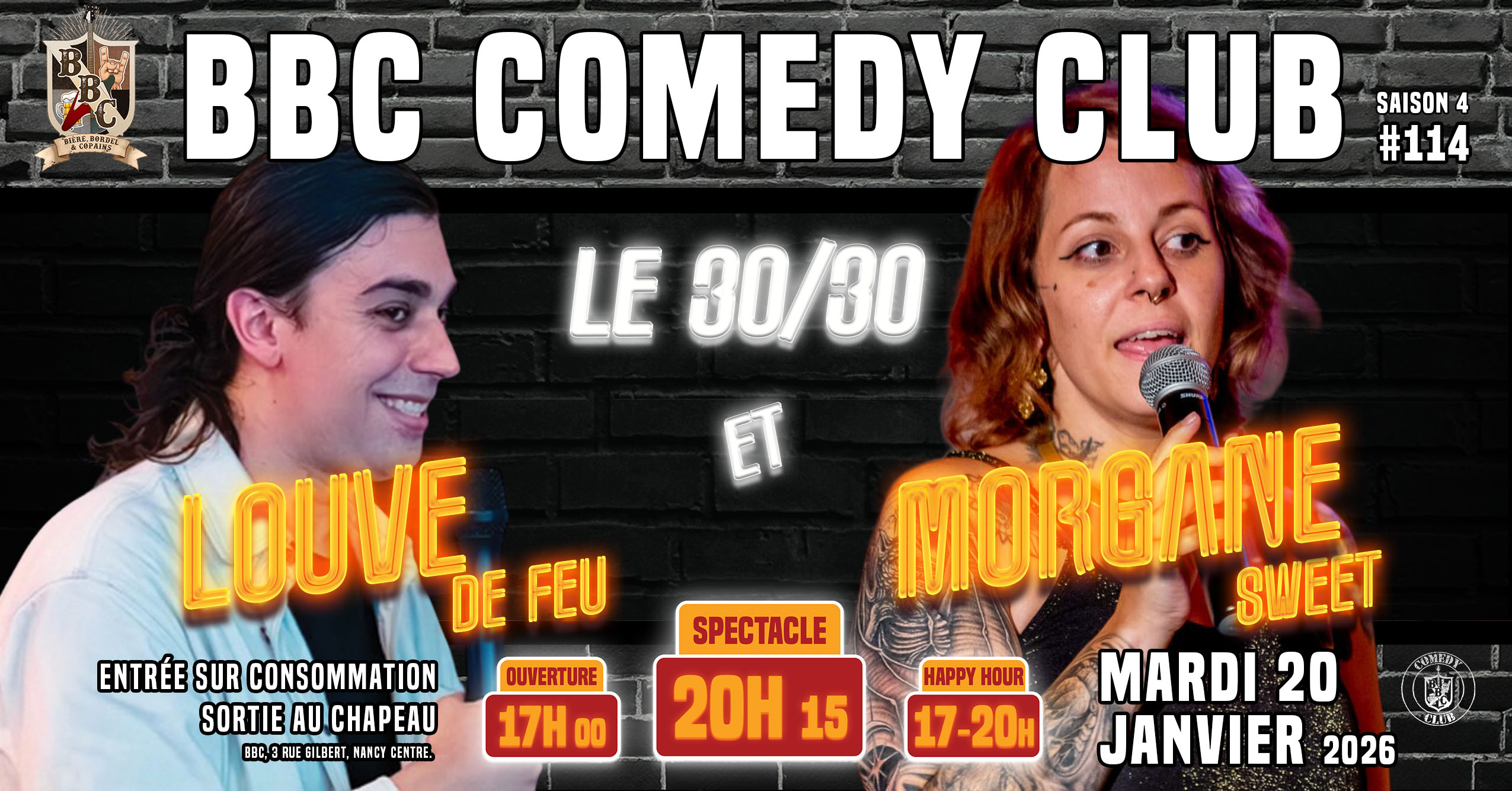 Mardi 20 janvier, venez inaugurer le premier 30/30 de l'année du BBC Comedy Club qui s’annonce déjà mémorable !