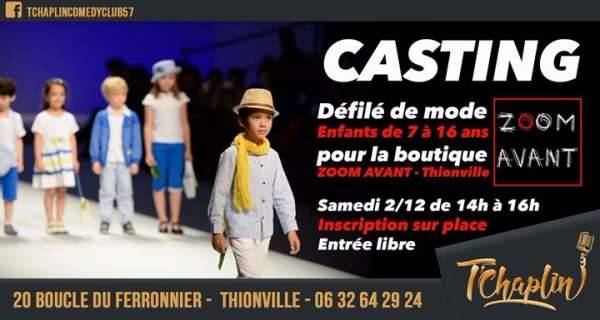 Le T’chaplin et la boutique Zoom Avant de Thionville organise dimanche 2 décembre de 14h à 16h un casting réservé aux enfants de 7 à 16 ans pour un défilé qui aura lieu le 17 décembre au centre-ville de Thionville.