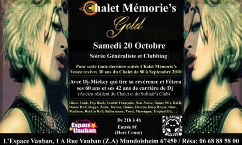 Samedi 20 Octobre, Chalet Mémorie’s "Gold" 30 Ans de Chalet