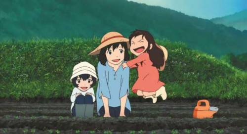 Hana et ses deux enfants, Ame et Yuki, vivent discrètement dans un coin tranquille de la ville. Leur vie est simple et joyeuse, mais ils cachent un secret : leur père est un homme-loup. Quand celui-ci disparaît brutalement, Hana décide de quitter la ville pour élever ses enfants à l’abri des regards. Ils emménagent dans un village proche d’une forêt luxuriante…