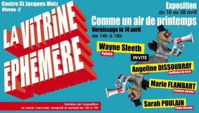 La Vitrine Ephémère vous invite à découvrir sa nouvelle exposition ’comme un air de printemps’ qui débutera le 10 Avril jusqu’au 28 Avril .