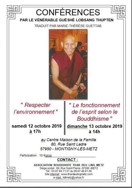 Le Vénérable Guéshé LOBSANG THUPTEN expliquera le point de vue bouddhiste du respect de l’environnement.