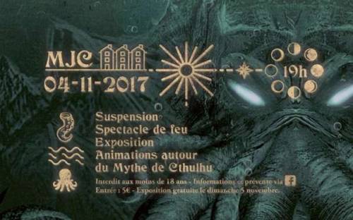 Cthulhu’ la plus célèbre des créatures de Howard Phillips Lovecraft revient sur terre à la MJC des Trois Maisons à Nancy (54000) les 4 et 5 Novembre pour une exposition fanatique proposant une relecture de ce mythe étrange à travers la sensibilité et l’implication d’artistes locaux ainsi que d’étranges rituels.