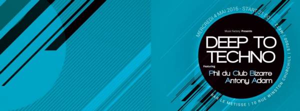 DEEP TO TECHNO MERCREDI 4 MAI 2016 [ LE METISSE METZ DJS : [ PHIL DU CLUB BIZARRE ] [ ANTONY ADAM ] Start 21h00