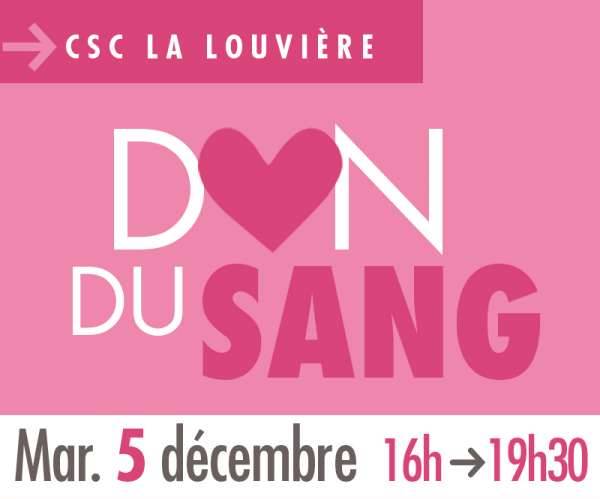 Donnez votre sang le mardi 5 décembre, au CSC la Louvière, de 16h à 19h30.