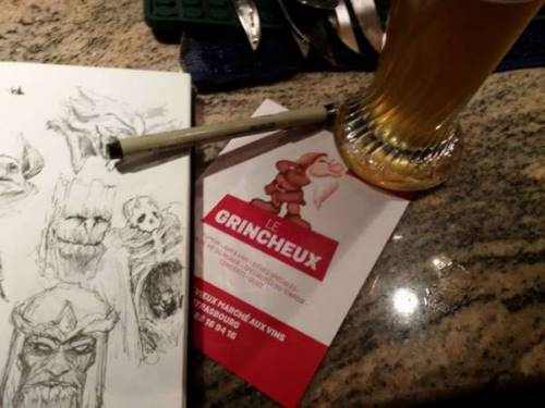 Pour ce premier Drink and Draw, ça se passe au Bar Le Grincheux, 27 rue du vieux marché aux vins à partir de 18h.