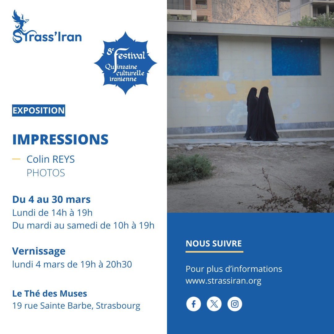 Entrez au cœur de l'Iran à travers l'objectif de Colin REYS. Dans cette exposition captivante, le photographe nous transporte dans les rues animées de Téhéran et d'Ispahan, capturant le quotidien des habitants sous la chaleur étouffante de l'été tout en révélant la douceur et la résilience du peuple iranien. Rejoignez-nous au vernissage pour rencontrer l'artiste et partager un moment de convivialité autour de ces superbes œuvres photographiques !