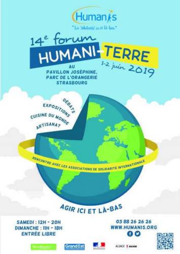 Le Collectif d’associations de solidarité internationale HUMANIS organise la 14e édition du Forum HUMANI-TERRE samedi 1er et dimanche 2 juin 2019 : convivialité, échanges et moments festifs seront au rendez-vous au Pavillon Joséphine au Parc de l’Orangerie à Strasbourg.