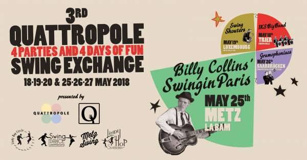 Leader de SwinginParis, le guitariste "Bad Boy" Billy Collins est né à New York, dans le Bronx, il chante et joue de la guitare. Sur scène, SwinginParis offre un spectacle énergique et dynamique. Exceptionnellement enrichi du pianiste César Pastre, SwinginParis vous emportera dans les plus grands standards de jazz, swing, blues, gospel et jazz de la Nouvelle-Orléans.