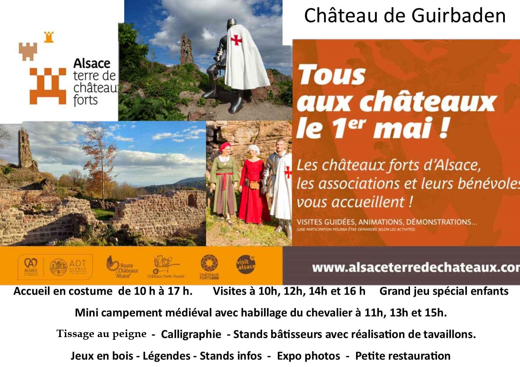 Les bénévoles qui restaurent le château de Guirbaden vous invitent pour la 11 ième année à la grande fête médiévale du 1er mai dans le cadre de la journée « tous aux châteaux ».