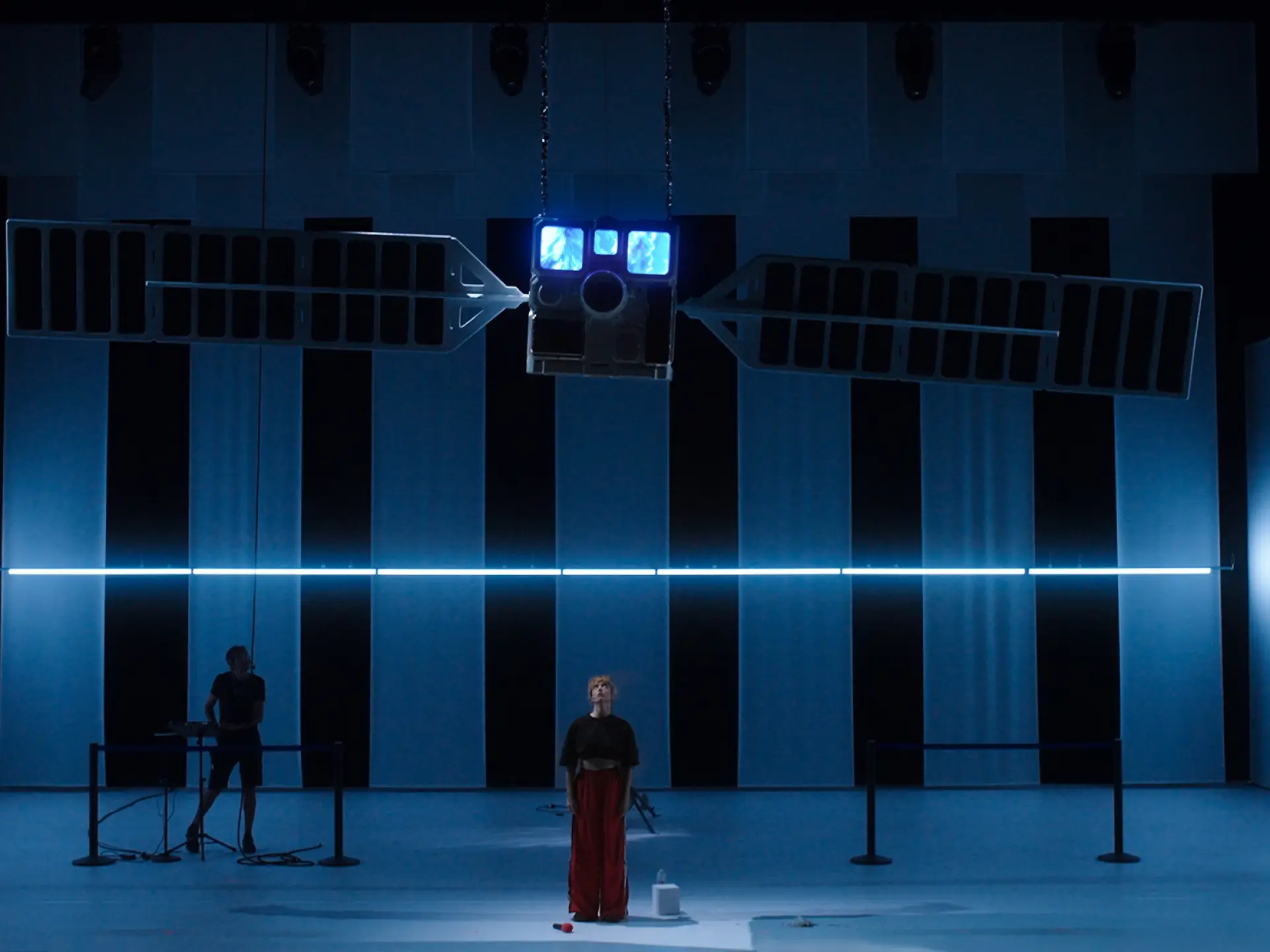 [de] Für Vimala Pons, Schauspielerin und Regisseu- rin, ist „das Gleichgewicht nur ein Übergangszustand: eine ständige Wiederherstellung des Ungleichgewi- chts“. Auf dem Drahtseil erkundet sie eine Partitur aus 120 Emotionen in einer Choreografie der Empfind- samkeit, in der ein Erzähler-Satellit SängerInnen und eine Performance in ständiger Bewegung beobachtet.