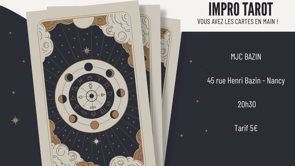 IMPRO TAROT . Un spectacle où vous êtes invité.e à tirer les cartes. La lecture et interprétation du public auront une incidence sur la vie des personnages et des histoires improvisées. Nous comptons sur vous pour apporter de cartes cartes d'oracles, cartes de jeux, cartes Pokémons, cartes postales… Elles vons seront restituée à l’issue du spectacle.