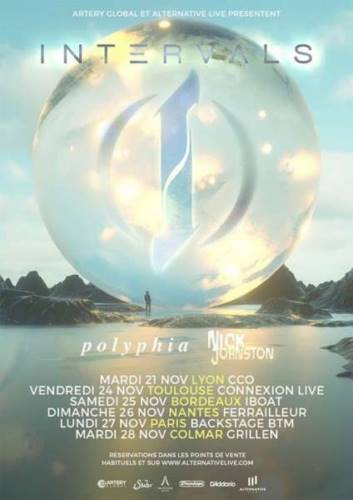 INTERVALS est une fenêtre ouverte sur l’esprit du guitariste et compositeur, Aaron Marshall. Fondé en 2011, INTERVALS a pour matière première une musique instrumentale et progressive reprenant des éléments traditionnels tout en ayant un oeil ouvert sur l’avenir. Après deux EP et un premier album intitulé A Voice Within qui avait introduit Mike Semensky au chant en 2014, INTERVALS est redevenu un groupe instrumental et a sorti son second opus The Shape Of Colour en décembre 2015. INTERVALS a tourné avec ANIMALS AS LEADERS, PERIPHERY, THE CONTORTIONIST, NORTHLANE. Le nouvel album d’INTERVALS sortira dans le courant de l’année.