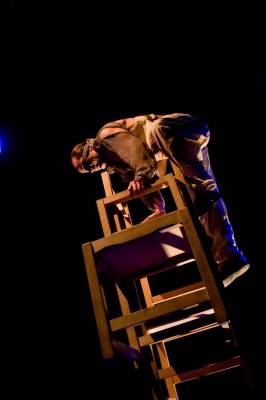 Pascal Rousseau recherche l’équilibre et se livre à des prouesses insensées pour l’atteindre : équilibre sur une petite planche portée par deux hommes, ascension d’une pile de chaises à l’aveugle, les yeux bandés... Il évoque des bribes de souvenirs, puisés dans son enfance passée avec son grand-père, dans une ambiance poétique.