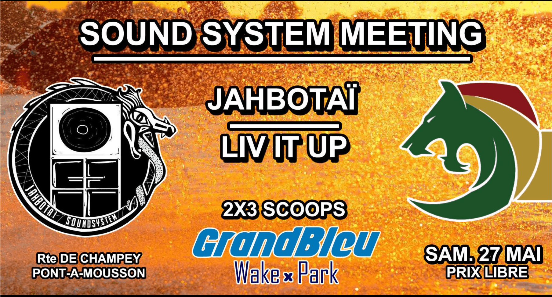 On se retrouve au Grand Bleu le 27 mai pour un meeting avec les copains du Liv'It Up Sound System qui viendra accompagné de sa sono avec 3 scoops et ça sera la même côté Jahbotaï avec nos nouveaux caissons, autant te dire que ça va ronronner très fort !!