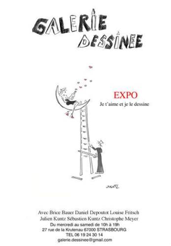 Exposition "Je t’aime et je le dessine" vue par Brice bauer - Daniel Depoutot - Louise Fritsch - Julien kuntz - Sébastien Kuntz - Christophe Meyer du 2 au 20 fevrier 2019 Galerie dessinée 27 rue de la Krutenau Strasbourg