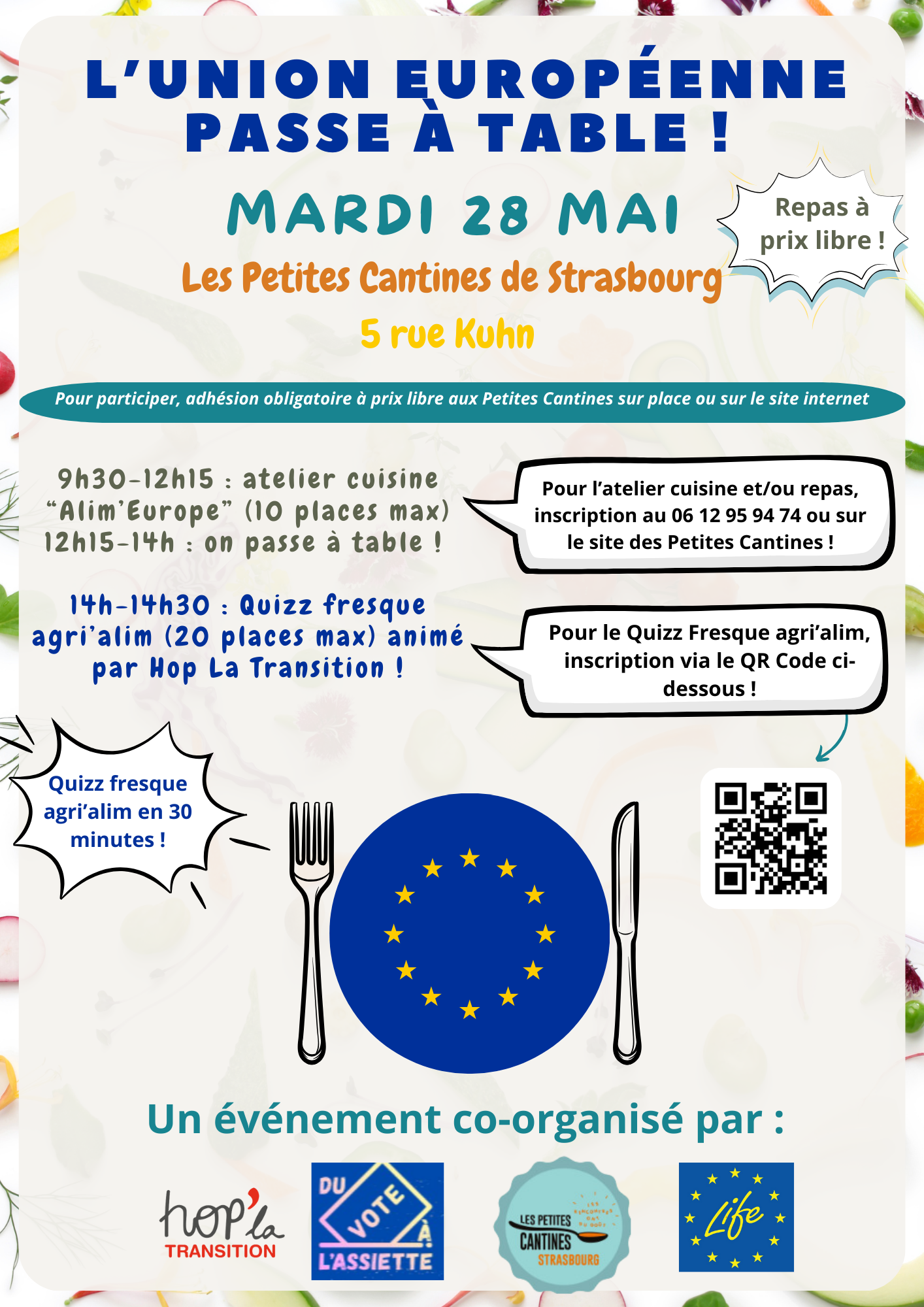 Pour participer, il est nécessaire d'adhérer à prix libre aux Petites Cantines sur place ou sur le site des Petites Cantines : https://strasbourg.lespetitescantines.org/adhesion-dons