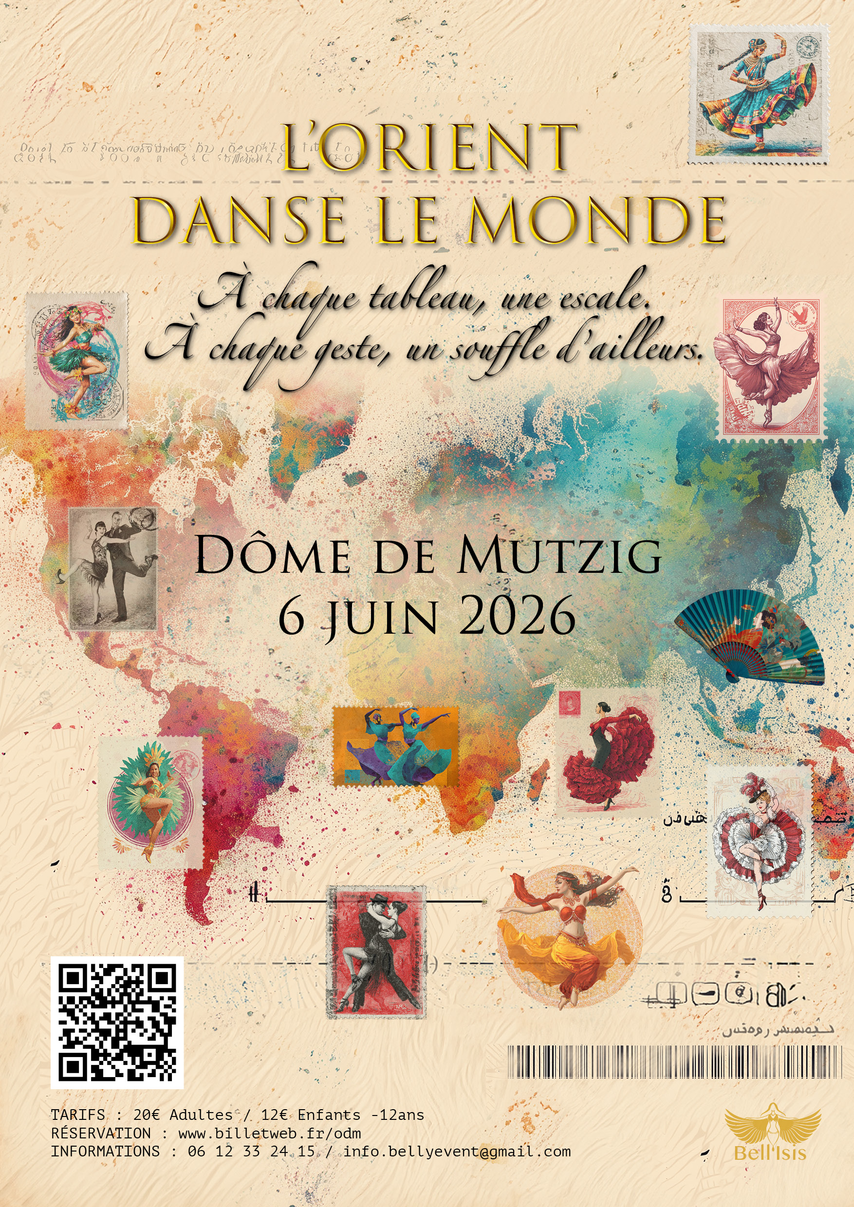 Rejoignez-nous pour ce voyage chorégraphique unique, où la danse orientale se mêle aux rythmes et aux couleurs du monde entier. Quand les frontières s’effacent… la danse unit les peuples.