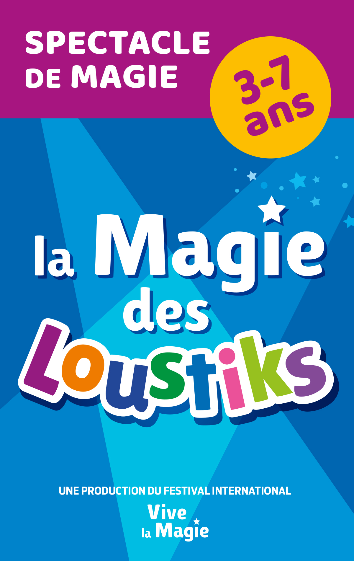 Pour la troisième année consécutive , le festival le plus important des Arts Magiques en Europe « Vive la Magie » agrandit sa programmation et lance, en plus des grands galas au FEMINA, des séances spécialement destinées aux 3-7 ans : "la Magie des Loustiks". Les séances pour le jeune public sont programmées au théâtre Molière, une semaine avant les grands Galas Internationaux.