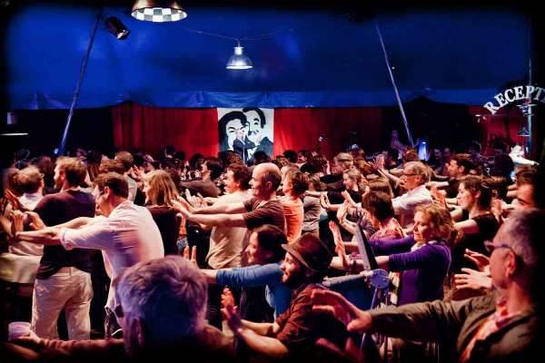 C‘est une invitationgénérale à danser, simple et accueillante. Sur la piste, on vient danser, on vient apprendre à danser, on invite et on est invité. C’estaussi une équipe endimanchée qui vous déshabille de toute timidité pour dédier son parquet aux danses et à la rencontre. L’orchestre « La Pulse à l’Orteil » et les meneurs de piste vous font voyager, sur leur répertoire. On goute à différents styles musicaux, on s’essaie à plusieurs pas, on voyage au gré des époques, des géographies, ou desatmosphères musicales et chorégraphiques. On danse seul, à deux, à dix, à cent, en couple, en cercle, en carré, en ligne, en foule. On change de partenaire, on rencontre son voisin. Danses à deux, danses collectives ou délires solo font vibrer le plancher sous vos pas endiablés.
