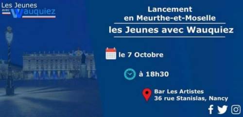 Le samedi 7 octobre, soyez les bienvenus pour la soirée de lancement du comité Jeunes avec Wauquiez 54 en présence d’Aurane Reihanian, Président des Jeunes avec Wauquiez, et d’élus du département.