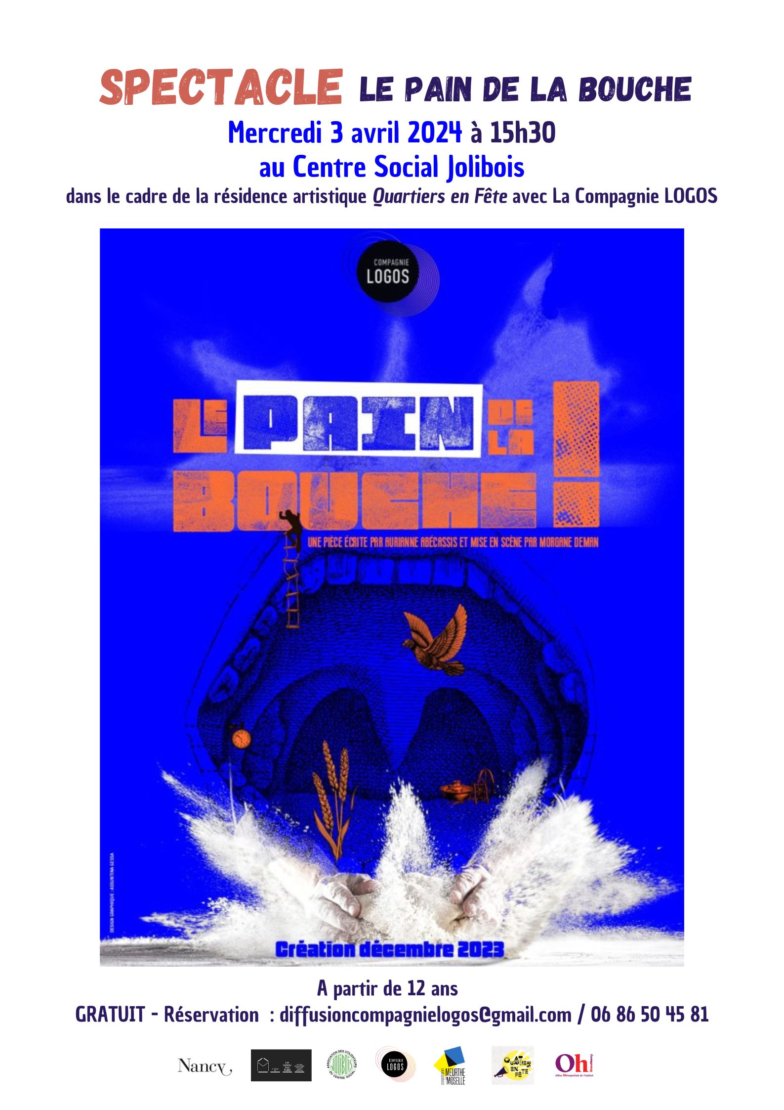 Gratuit sur réservation : diffusioncompagnielogos@gmail.com