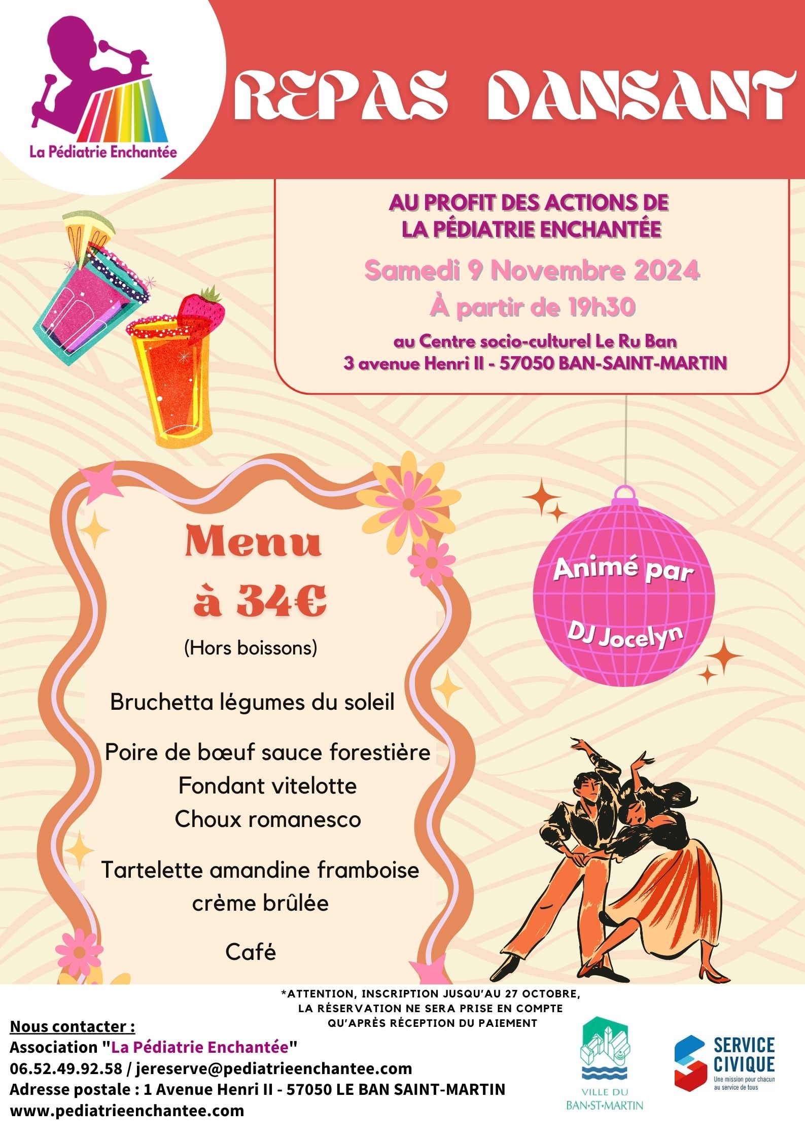 La Pédiatrie Enchantée organise son fameux repas dansant ! Les fonds récoltés permettront de financer les ateliers culturels proposés aux enfants hospitalisés ou en institution de Lorraine.