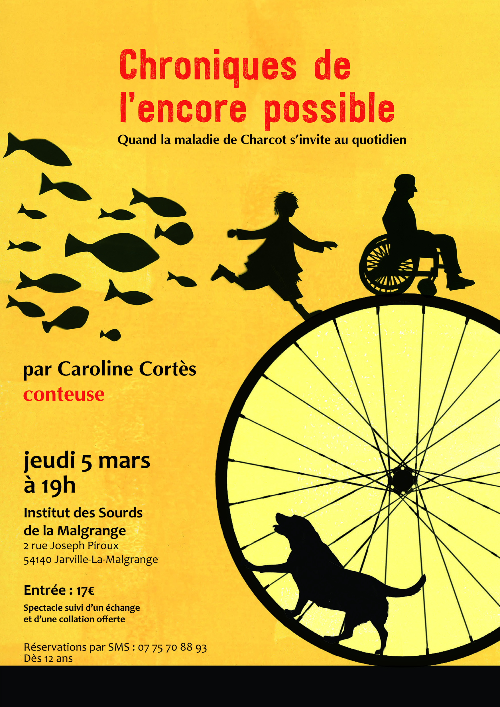 Chroniques de l'encore possible : Quand la maladie de Charcot s'invite au quotidien, un spectacle qui questionne le sens de la vie quand la maladie vient l'esquinter. Il raconte comment malgré la tragédie, puiser des ressources pour rendre sa vie lumineuse et inspirante.