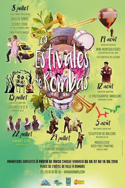 Chaque vendredi, du 8 juillet au 19 août, la Ville de Rombas propose des animations gratuites, à partir de 18 h 30, sur la place de l’Hôtel-de-Ville. Buvette et restauration y sont assurées par les associations locales. Avec, aussi, un espace de jeux (jusqu’à 22 h) ainsi que des confiseries et des glaces proposées par la Maison de l’enfance.