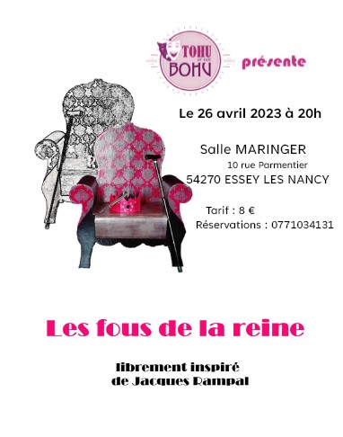 Tohu or not Bohu présente « Les fous de la reine », librement inspiré de Jacques Rampal. Mise en scène Catherine Fayard. Avec Marie-Noëlle Delon, Martial Imbault, Claude Rousseau, Catherine Wickleder.