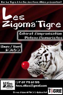 La Cie des Fous Alliés et Le Tigre Bar proposent un concept original et inédit : Les Zigoma’Tigre. Un spectacle d’humour aura lieu tous les mois alternant entre cabaret d’improvisation et plateau d’humoristes.