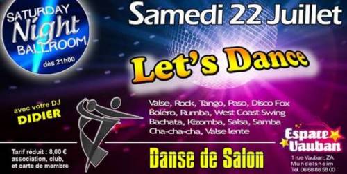 LET’S DANCE la nouvelle formule Danse de Bal avec votre DJ DIDIER, laissez vous porter par une ambiance musicale trés variée : Valse, Rock, Tango, Paso, Boléro, Rumba, West Coast Swing, Disco Fox, Bachata, Kizomba, Salsa, Samba, Cha cha cha, Valse lente