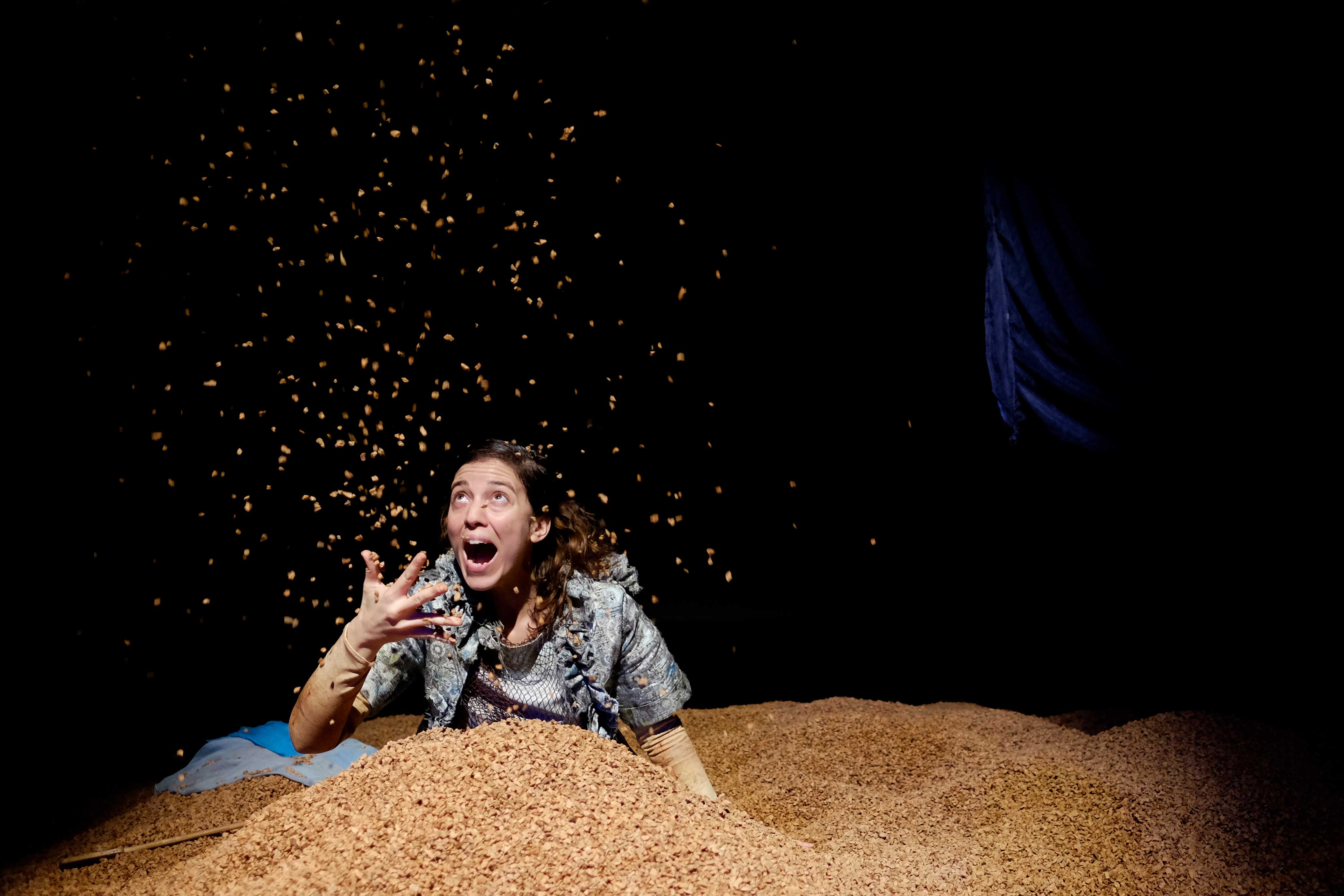Pour raconter ce phénomène naturel, la comédienne joue avec le sable et le souffle du vent, sans un mot, pour stimuler tous les sens et l’imagination des spectateurs.