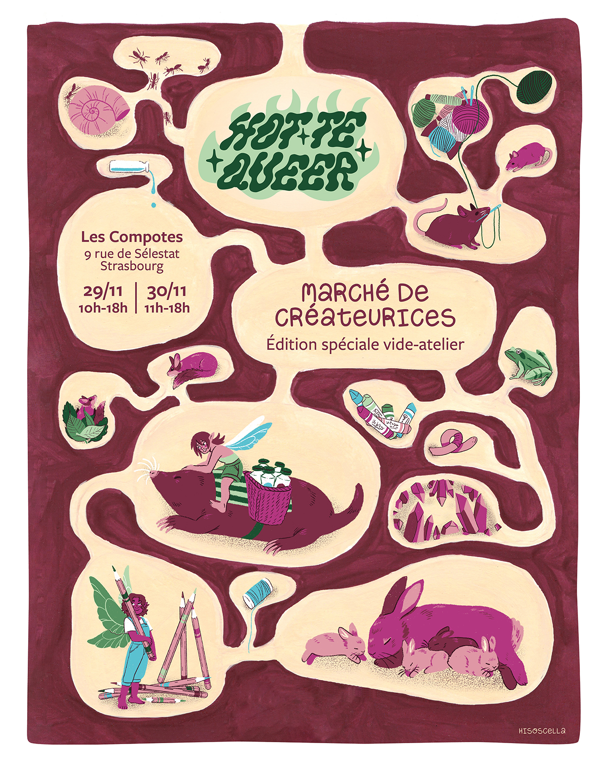 Hot·te queer reprend place aux Compotes Café pour sa cinquième édition. L'événement a pour but de valoriser et soutenir les artistes LGBTQIA+. Illustration, gravure, bijoux, micro-édition ... Les stands proposés seront variés : une quinzaine d'artistes occuperont le lieu tout le week-end pour un moment culturel et festif !