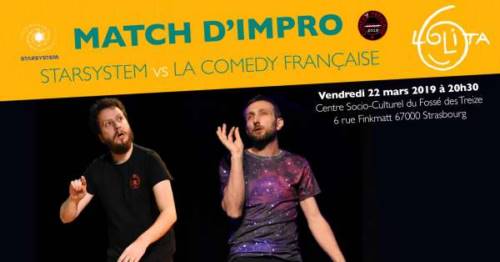 En 1687, La Comédie Française fût expulsée de son théâtre par le Roi Soleil pour trouble à l’ordre public. En 2019, les soleils dansants du Starsystem vont-ils faire de l’histoire un éternel recommencement ou bien La Comedy Française va-t-elle venger la mémoire de ses pairs - C’est avec un match d’improvisation que va s’écrire cette nouvelle page de L’histoire avec un grand L, comme Lolita. On n’avait plus vu le Français briller dans les étoiles depuis Thomas Pesquet alors on a hâte de s’asseoir dans le théâtre du CSC Fossé des Treize, celui de la Comedy Française pour s’envoler vers la constellation du Starsystem! Décollage imminent!