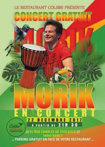 Venez déguster un bon repas antillais en vous laissant porter par la musique et les chansons de Morik, artiste Guadeloupéen. Dernier live de l’année à Nancy avant de s’envoler en Guadeloupe pour 2 concerts en janvier.