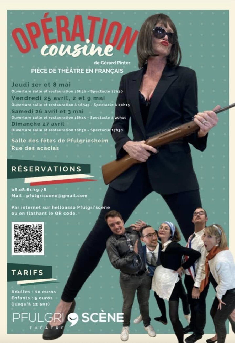 Cette année Pfulgri’scène revient encore et toujours avec une comédie hilarante : « Opération cousine! » un seul objectif: faire passer un bon moment de détente aux spectateurs.