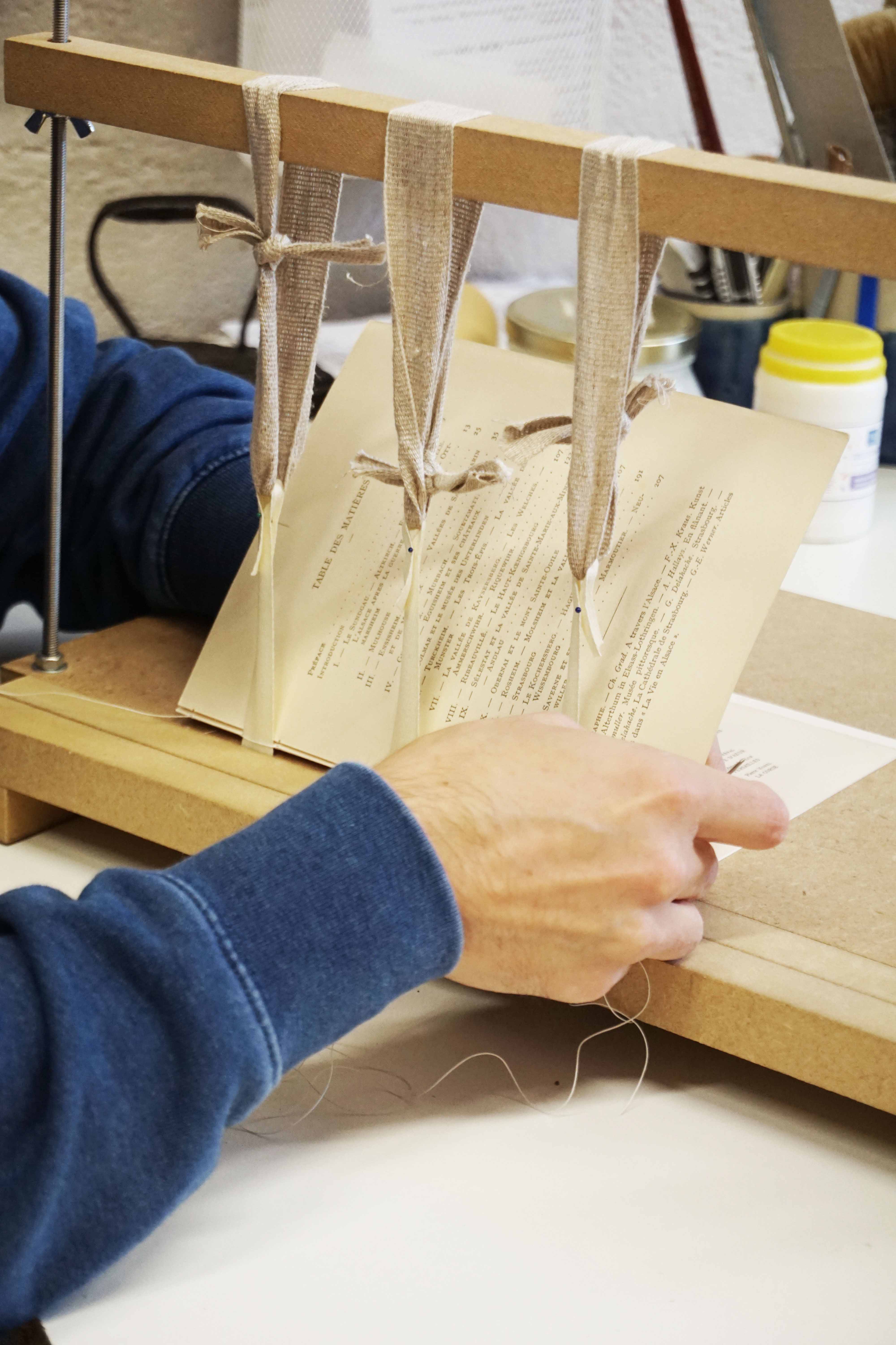 histoire et ses propres difficultés. Selon l’état du document différents niveaux d’intervention vont être nécessaires, pour les plus abîmés on peut envisager des bains pour désacidifier le papier, des gommages pour un nettoyage plus superficiel, un doublage au papier Japon pour le renforcer, des réparations des fonds de cahiers… Ce côté unique que présente chaque livre rend ce métier passionnant. Pouvoir participer à ce que certains documents traversent le temps et continuent à être consultables est incroyablement gratifiant, et ce tout particulièrement pour les particuliers qui me font confiance pour redonner vie aux ouvrages qui leur sont chers. »