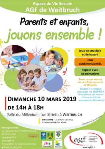 Pour la troisième année consécutive, la section AGF (Association Générale des Familles du Bas-Rhin) de Weitbruch organise une après-midi jeux :